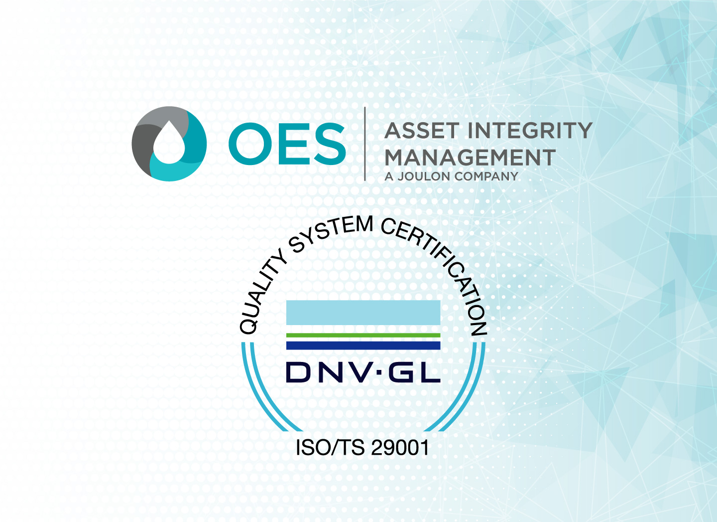 OES Asset Integrity Management is pleased to announce their recent award of the ISO 29001:2020 accreditation for its Quality Management System.