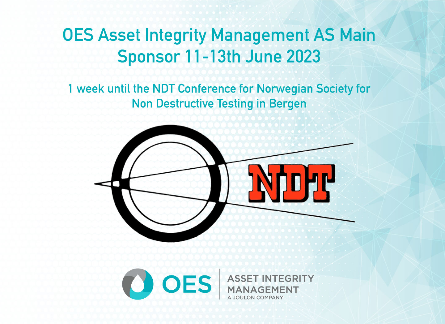 OES Asset Integrity Management AS is pleased to announce that they are the main sponsor of the Annual Norwegian Society for Non Destructive Testing Conference in Bergen. The conference is being held at the Clarion Hotel Admiral on 11th-13th June 2023.
